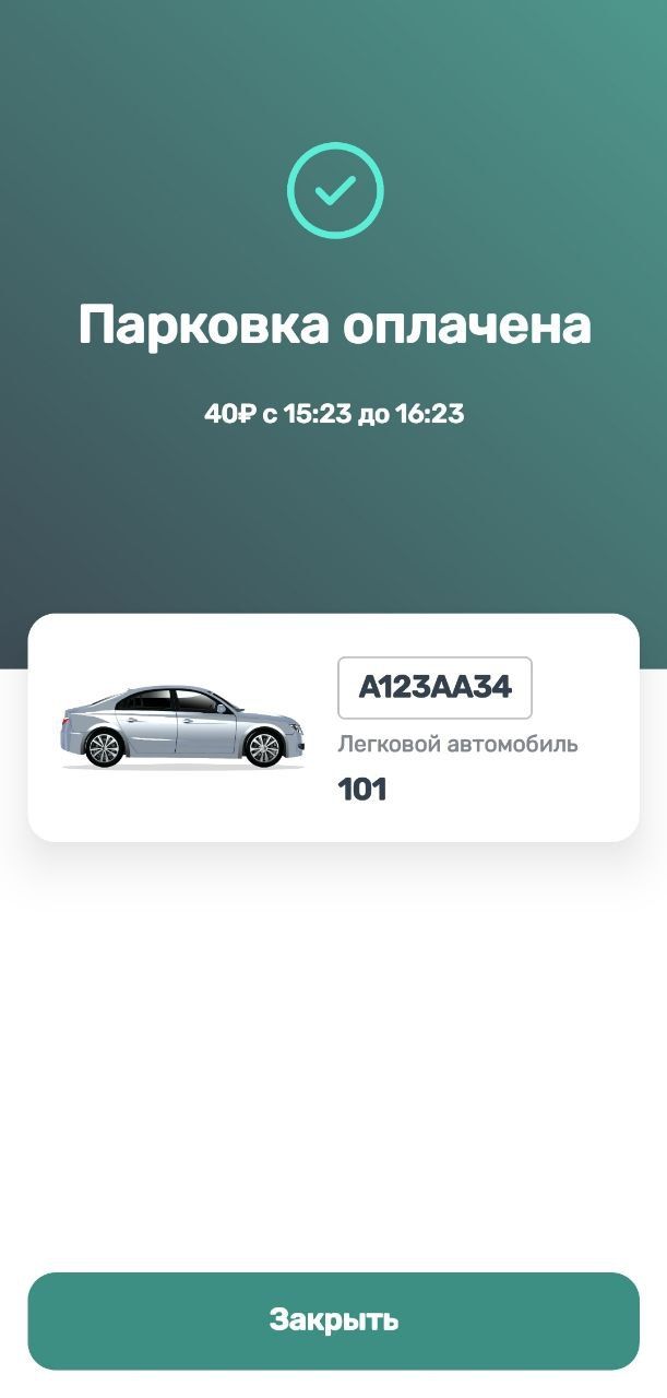 7. Перед вами появится информация о начале и конце оплаченной парковочной сессии.